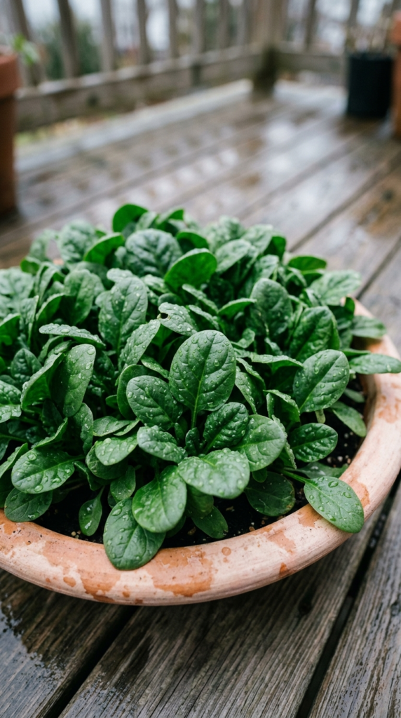 Container growing works brilliantly for spinach. A window box or deep tray on a south-facing balcony is genuinely all you need — just make sure you’ve got at least 6 inches of depth for roots to develop properly.