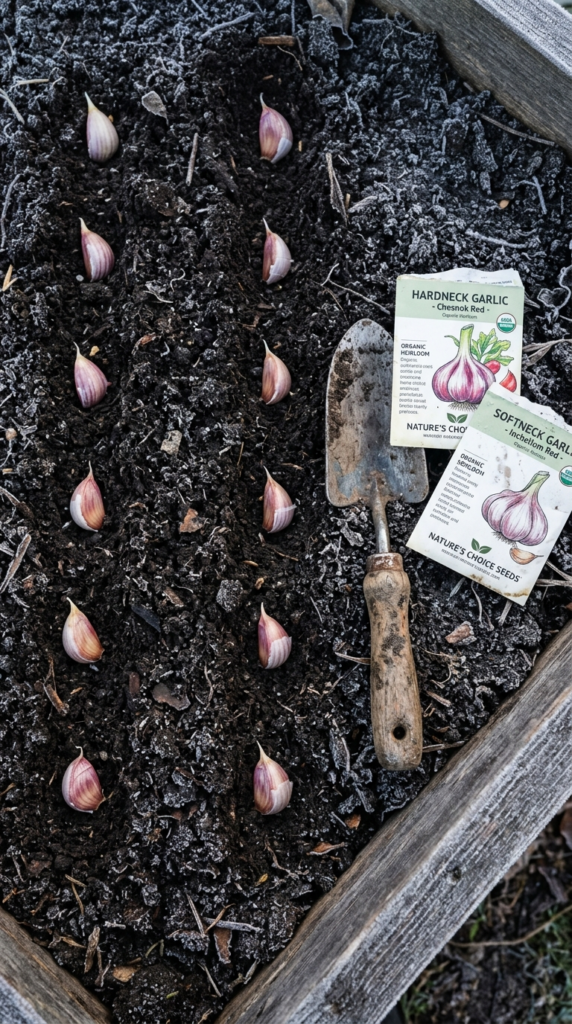 Here’s the thing: garlic actually needs a cold period (called vernalization) to split into individual cloves and form a proper bulb. Planting in autumn is not optional — it’s essential for a good harvest!
