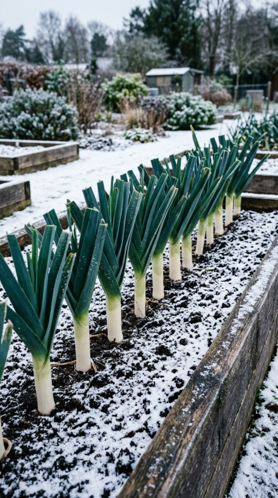Leeks are the quiet, dependable backbone of the winter vegetable patch. They’re genuinely frost-hardy, they stand upright in the ground for months, and you just pull them as you need them — no storage required!