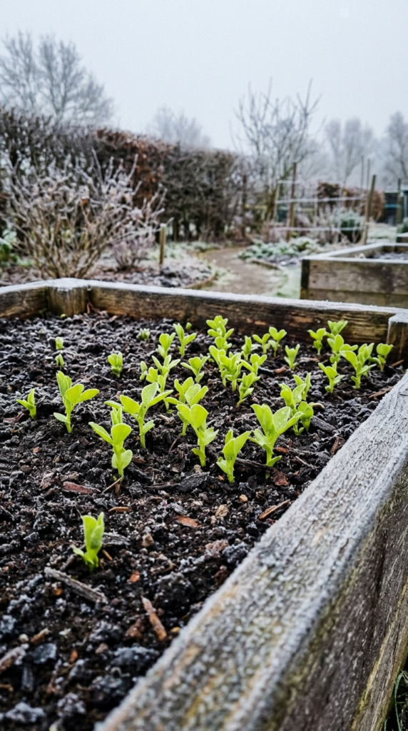 The biggest enemy of winter lettuce isn’t cold — it’s waterlogging. Make sure your containers or beds have excellent drainage, because cold wet soil is a recipe for rotting roots and crown rot. Under a cold frame or fleece row cover, even relatively tender varieties can push through mild winters without damage.