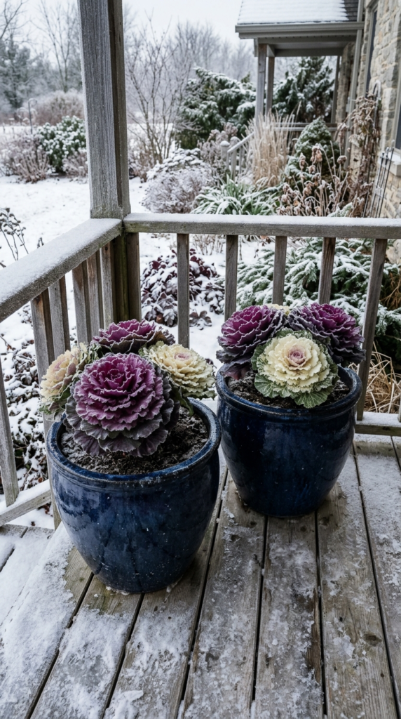 If you want serious visual drama in your winter containers, ornamental kale and cabbage are your answer. These plants are basically works of art — giant rosettes of ruffled, frilled foliage in the most gorgeous shades of purple, burgundy, cream, and pink.