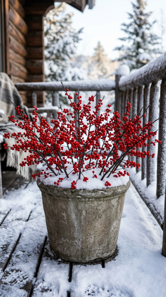 Talk about a game-changer! Those densely packed berries on bare branches look absolutely stunning in containers, especially against a backdrop of snow. They also attract birds, which makes your porch a little wildlife habitat — a lovely bonus.