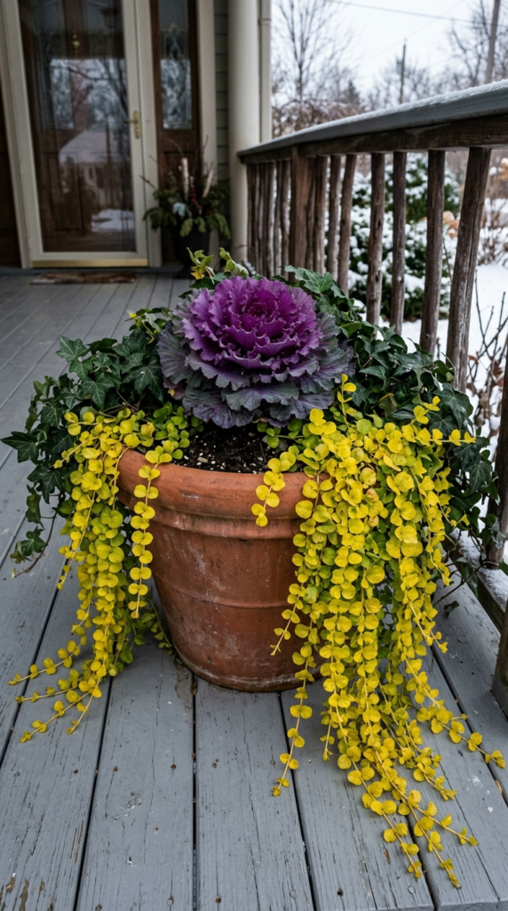 Here’s the deal: ivy’s real superpower is making every other plant in a container look better. Its cascading vines and glossy dark green leaves create the perfect backdrop and “spiller” element for a thriller-filler-spiller combination. Pair it with ornamental kale, winterberry holly, or a dwarf conifer and the whole arrangement looks instantly luxurious.
