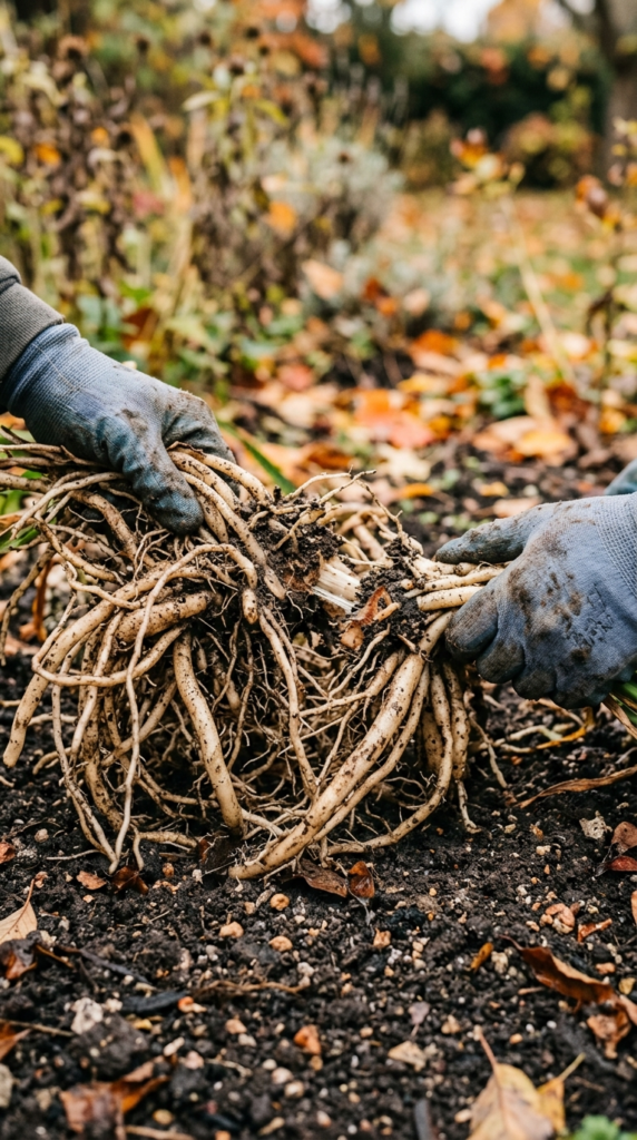 This is honestly one of the biggest game-changers for fall daylily care. Daylilies that have been in the same spot for 3–4 years or more get overcrowded, and overcrowded plants produce fewer, smaller blooms. Dividing them fixes that instantly.