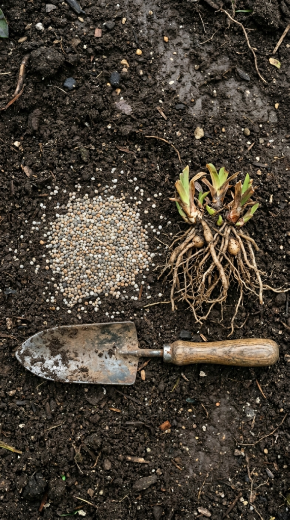What you want instead is a low-nitrogen, phosphorus-rich fertilizer — something like a 5-10-10 or bone meal — applied in early fall. Phosphorus feeds the root system directly, helping daylilies store maximum energy for next season’s spectacular show.