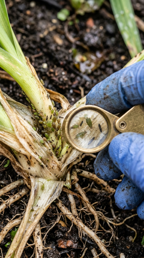 Fall is the perfect time to scout for pests because many insects are looking for exactly that cozy spot to overwinter — and your daylily crown is prime real estate. Getting ahead of them now prevents a nasty surprise infestation next spring.
