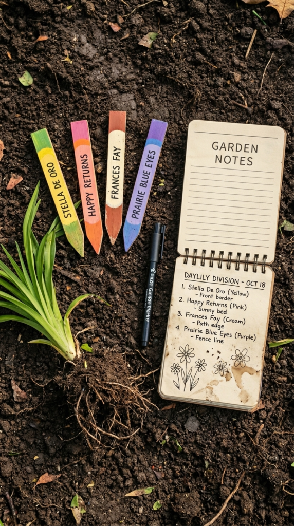Here’s something so many gardeners kick themselves over every spring: by the time those first green shoots emerge, you have absolutely no idea which daylily is which. Labeling your varieties now while the plants are still somewhat visible saves enormous frustration.