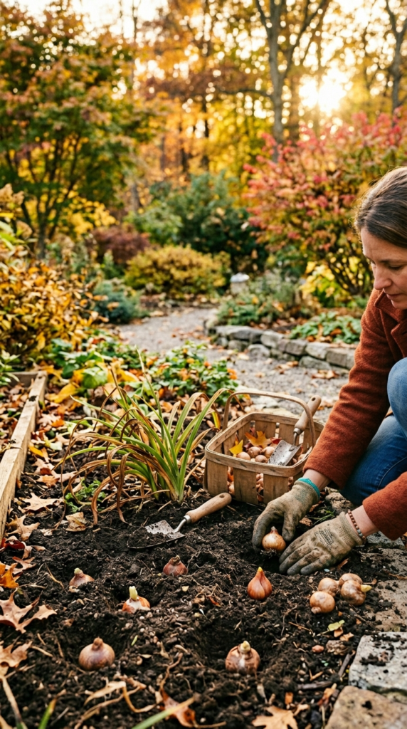 Fall is the perfect window to plant spring-blooming bulbs right alongside your daylilies — and the combination is absolutely stunning in the garden. Tulips, daffodils, and alliums will pop up and bloom in the gap between late winter and early summer, right before your daylilies take over the show.