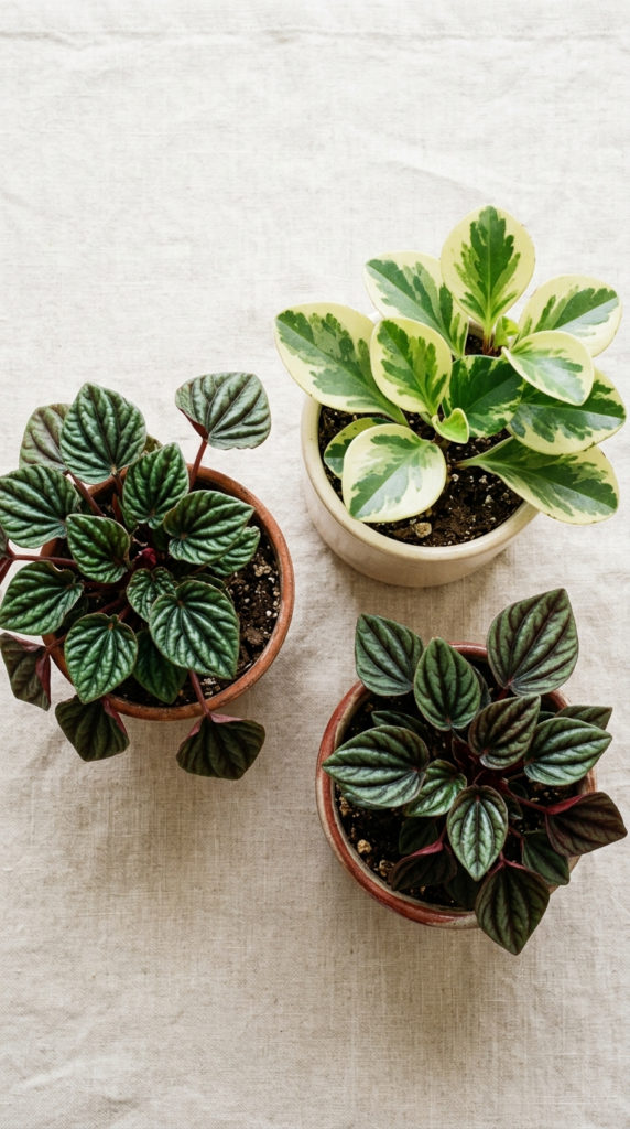 💡 Pro tip: Peperomias store water in their thick leaves, so they’re very drought-tolerant. If you forget to water for a week or two, they’ll be just fine!