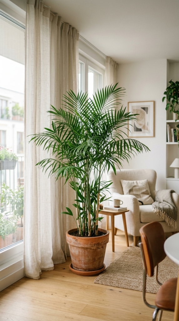 They tolerate genuinely low-light conditions better than almost any other palm, which is rare! They stay compact and manageable — usually between 2–6 feet tall indoors — making them perfect for smaller apartments.