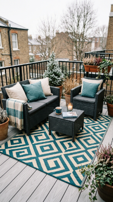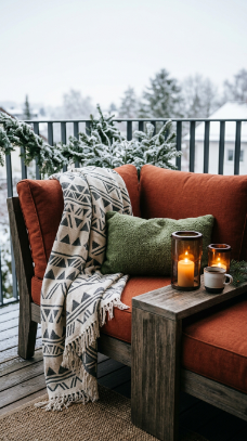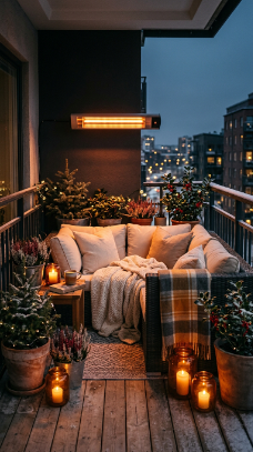 - Balconies and small urban spaces are some of the easiest outdoor areas to transform for winter — their compact scale means a few well-chosen elements have enormous visual and functional impact.