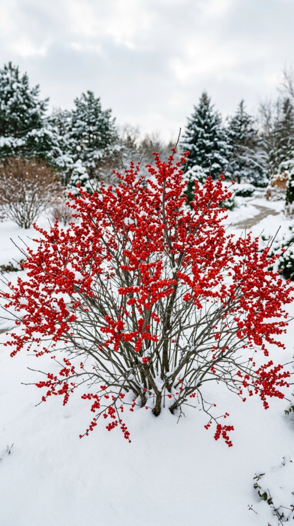 If you plant only one winter-hardy shrub this year, make it winterberry holly. When those neon-red berries explode against a white snowy backdrop, the effect is genuinely breathtaking — like nature’s own Christmas decoration.