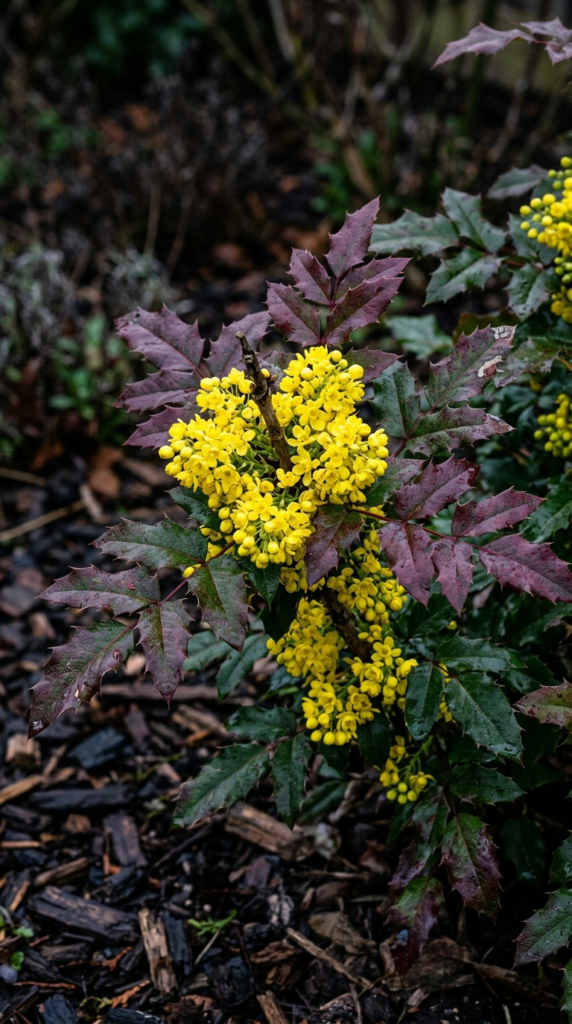 11. Mahonia — Spiky Texture and Winter Yellow Blooms