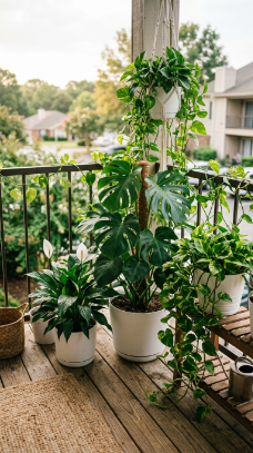 Here’s the thing: plants actually help each other! When you group your pots together, their collective transpiration raises the humidity around them — which is exactly what tropical and leafy plants crave in dry summer heat.