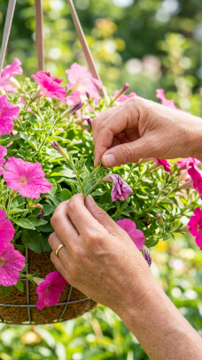 | Petunias | Pinch below the base of the flower | Every 2–3 days |