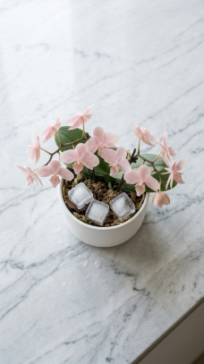 Pro Tip: Use room-temperature or slightly melted ice if you’re in a very hot climate — ice-cold water can shock tropical orchid roots. Leave the cubes out for 5 minutes before placing them.