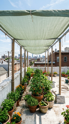 Ferns, hostas, impatiens, begonias, and many tropical foliage plants prefer filtered light rather than direct blazing sun. In a balcony or rooftop container garden, shade cloth can be the difference between thriving and surviving.