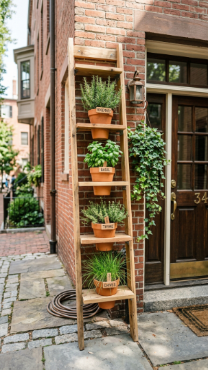 Explore vertical ladder window box system DIY ideas and visit Iowa State University Extension’s guide to vertical herb container systems.
