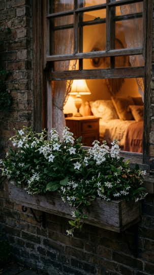 A scented night garden window box positioned below a bedroom window is one of the most genuinely luxurious home garden upgrades imaginable — lie in bed with the window cracked open on a warm evening and the fragrance of night-scented stock, white nicotiana, and jasmine drifts in like the most natural, beautiful aromatherapy in the world.