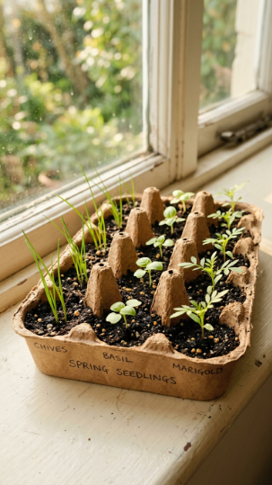 Growing from compostable egg cartons means your eco friendly windowsill project creates zero packaging waste from the very first seed.