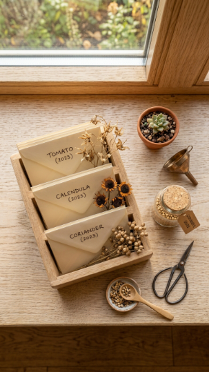 A seed saving station makes your windowsill garden genuinely self-sustaining from one season to the next.