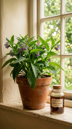 Growing comfrey on your windowsill provides an unlimited, genuinely free source of liquid fertiliser that is richer in potassium and phosphorus than most commercial products — and it’s ready within weeks of planting.