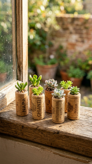14. Repurposed Wine Cork Succulent Terracotta Display