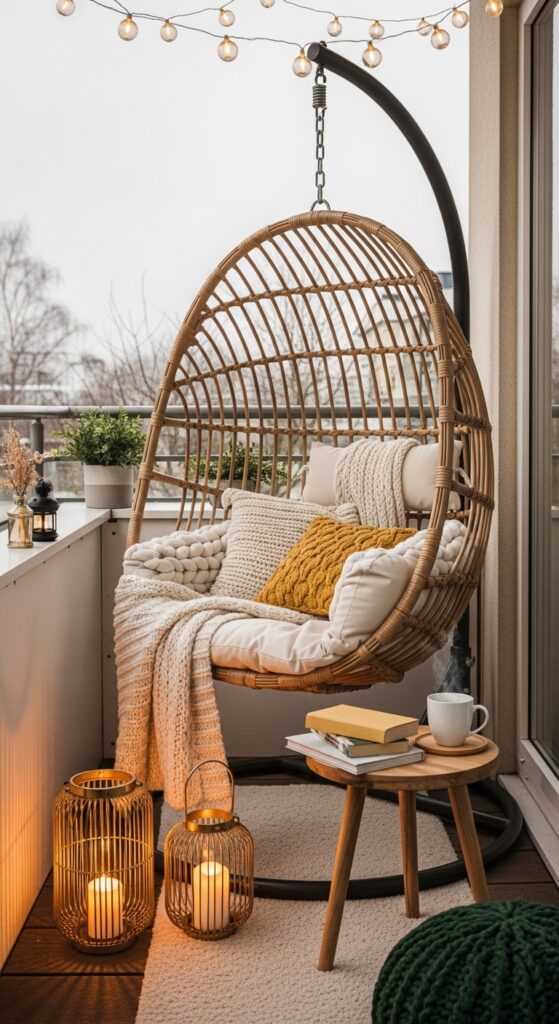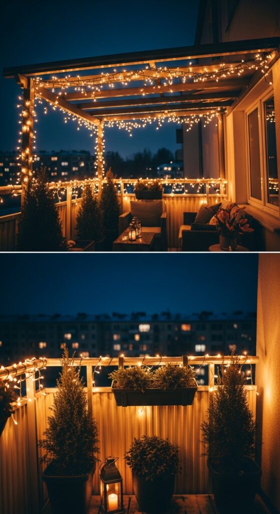 If there’s one thing that transforms a balcony from “meh” to absolutely magical in winter, it’s string lights. Full stop. The shorter days mean you get way more hours to enjoy that warm, twinkling glow!