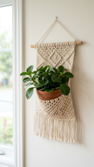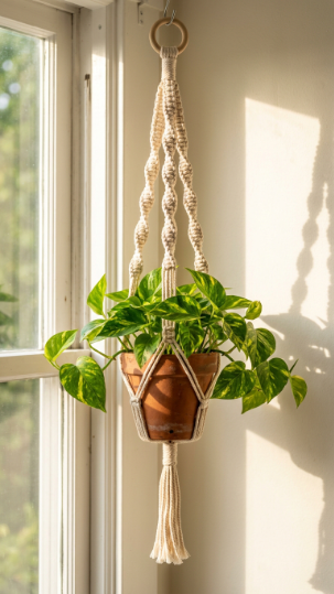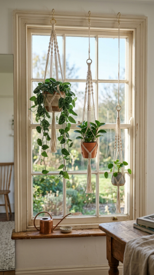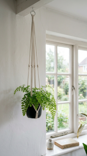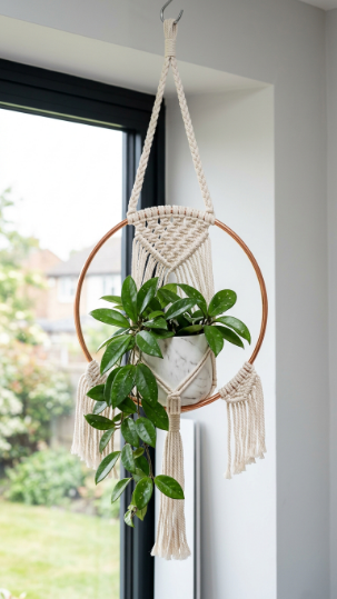 The cost argument is equally compelling. A single purchased macramé plant hanger retails for £15–£40 in most home décor shops. The materials to make one — a skein of cotton rope and a small metal ring — cost £3–£5. Make ten hangers and the saving is substantial; more importantly, you control the length, the knot pattern, the colour, and the pot size to fit your specific window exactly.