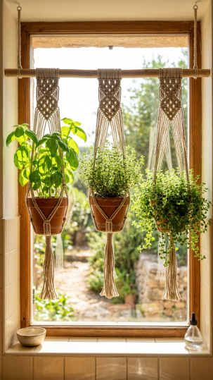 11. Linen Cord Hanger for a South-Facing Herb Window
