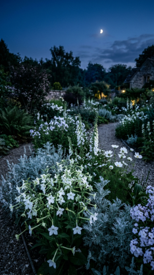 🌿 Pro Tip: Add white-flowering night-scented plants — white nicotiana and moonflower vine (Ipomoea alba) — because a moonlight garden should engage smell as powerfully as sight. The heavy, exotic fragrance that releases after dark adds a sensory layer that makes the experience genuinely enchanting.