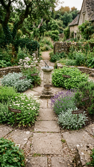 🌿 Pro Tip: Add a stone sundial or carved sphere at the center of your herb witch’s garden as a focal element — it grounds the space architecturally and adds a layer of celestial symbolism (the sun’s movement, the marking of time) that deepens the magical atmosphere considerably.