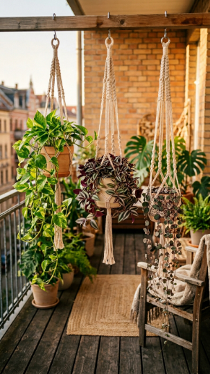 💡 Pro Tip: Use outdoor-grade or waxed macramé cord if your balcony is exposed to weather — natural cotton deteriorates quickly in rain and humidity.