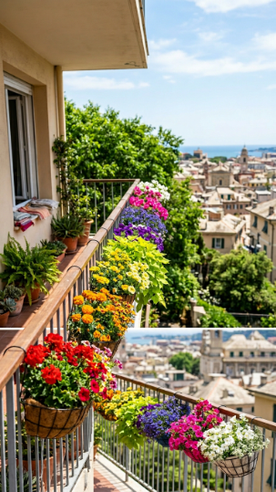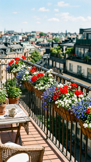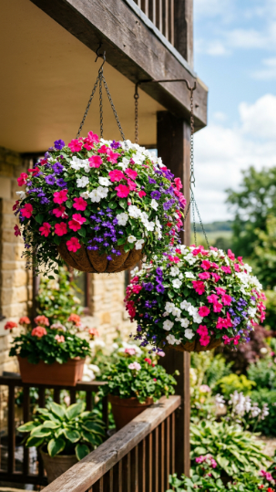 - Seasonal refreshes — swapping in summer flowering annuals or autumn foliage plants — let you reinvent your hanging balcony garden multiple times a year with minimal effort.