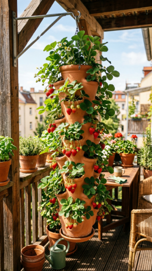 Growing your own strawberries on the balcony is genuinely one of life’s great joys — and a hanging strawberry tower means even a tiny balcony can produce a proper crop. It’s productive, beautiful, and deeply satisfying.