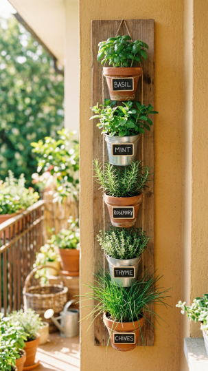Fresh herbs on your balcony wall — talk about a game-changer for your cooking!