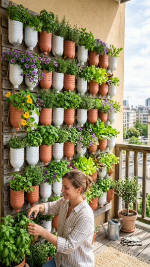 Grow food from recycled bottles on your balcony wall — eco, productive, and gorgeous!