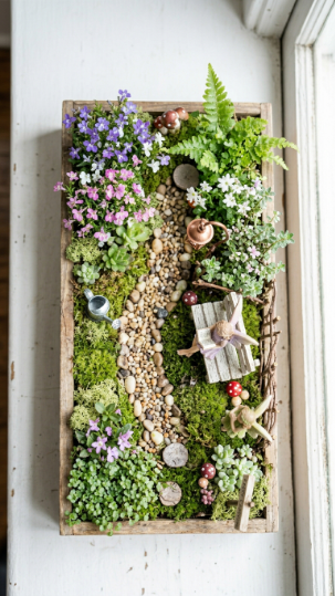 A miniature fairy garden in a windowsill box is one of those projects you start as a quick weekend activity and end up spending three very happy hours on. It’s imaginative, creative, and genuinely beautiful.