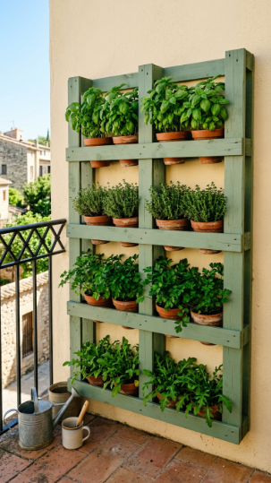 A vertical pallet garden is the single most space-efficient DIY project to create a balcony oasis — it grows 10–12 plants on a footprint smaller than a doormat.