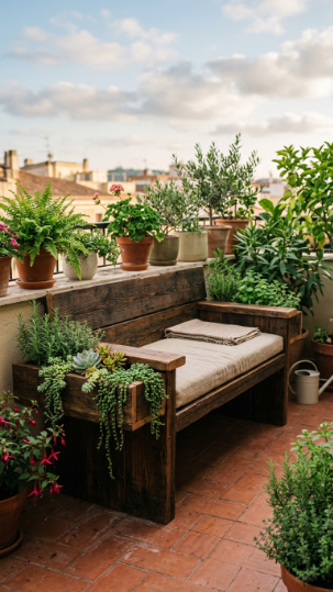 A bench that also grows plants is the most space-honest piece of furniture a small balcony can have.