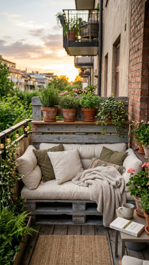 A pallet sofa transforms your balcony from a storage space into the outdoor room it was always meant to be.