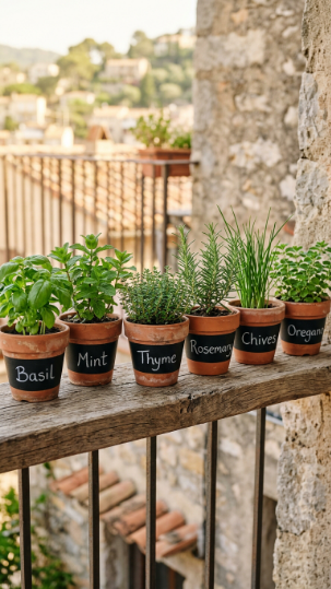 Chalkboard-banded plant label pots are one of the cheapest and most charming DIY projects for a balcony oasis — and they make the most functional difference when you’re managing a collection of 10+ pots.
