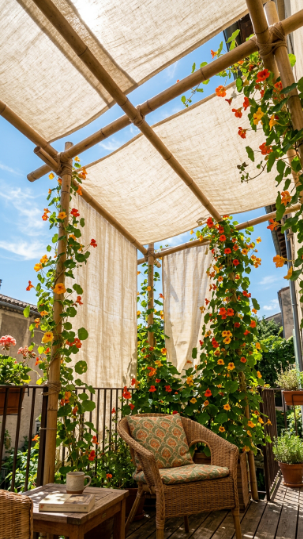 20. Balcony Shade Canopy with Climbing Nasturtiums