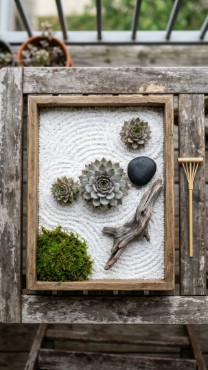 A zen garden tray on a balcony table is an invitation to pause — and on a busy day, that’s worth more than any other plant.