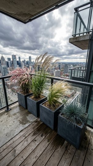 23. DIY Wind-Resistant Balcony Planting with Ornamental Grasses