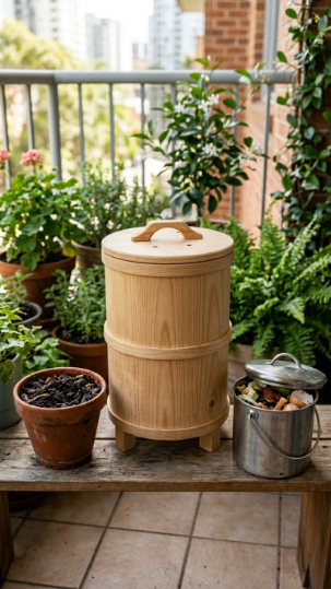 A balcony worm tower converts kitchen scraps into the richest possible compost for your container plants — closing the loop between kitchen waste and garden fertility in a system that fits in a 30cm square.