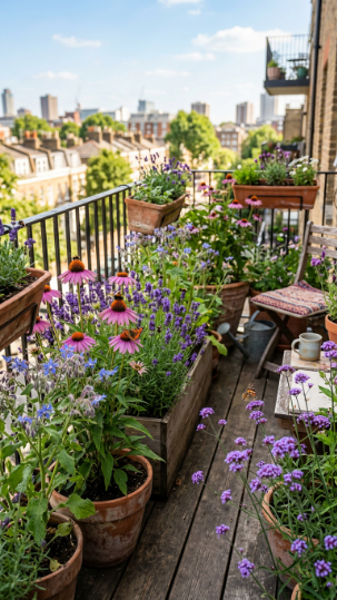 Here’s something genuinely meaningful: a pollinator-focused balcony arrangement connects your small urban outdoor space to the wider ecological story of urban wildlife. Plant echinacea, lavender, borage, and verbena and you’ll have bees, butterflies, and hoverflies visiting daily — turning your balcony into a functioning piece of urban biodiversity.