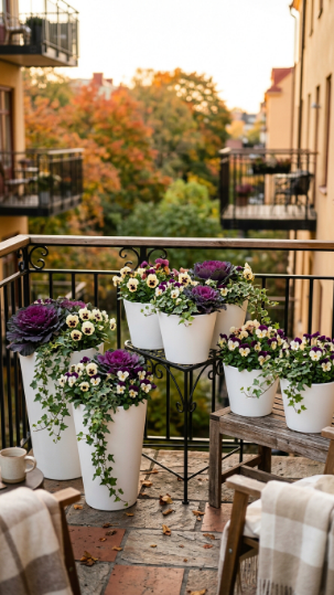 The smartest long-term investment in your balcony plant arrangement is building a framework of identical permanent pots in a fixed layout that you swap plants in and out of seasonally. The pots never move — the plants rotate through spring, summer, autumn, and winter palettes.