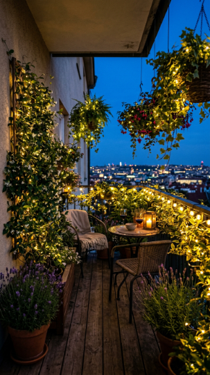 Here’s the deal: a balcony plant arrangement that looks beautiful in daylight but transforms into pure magic at night with fairy lights is an investment in your quality of outdoor life that pays back every single evening. Warm white LED fairy lights woven through climbing jasmine, hanging baskets, and potted lavender turn your balcony into an outdoor room you’ll never want to leave.