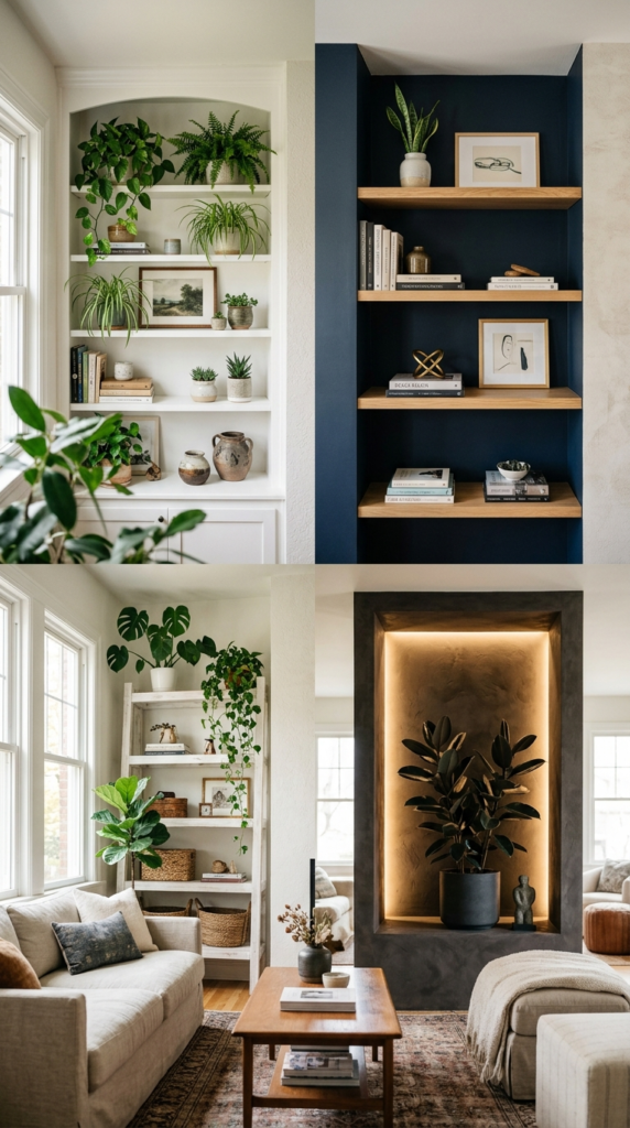 💡 Pro Tip: Even a single alcove or recessed wall niche converted into a built-in plant display creates a focal point that anchors an entire room’s design. You don’t need a full wall to make a massive impact — sometimes a single well-lit shelf alcove is all it takes!